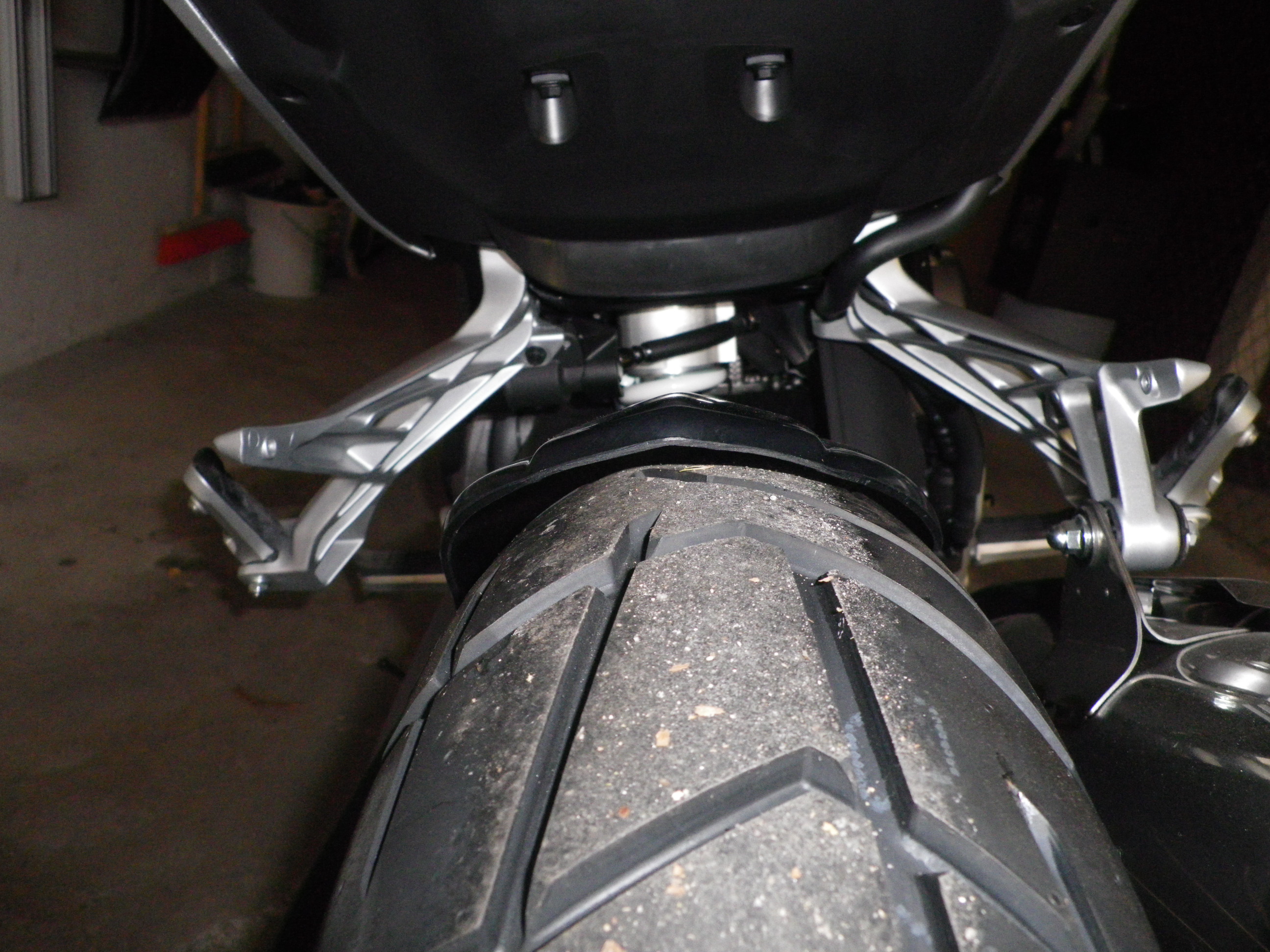 Der Hugger (um etwa 30mm gekürzt) sitzt jetzt endlich, wie er soll und auch der Hauptständer hat keine Chance mehr daran zu scheuern oder anzuschlagen. Und wieder einen peinlichen Termin in der Werkstatt erspart...