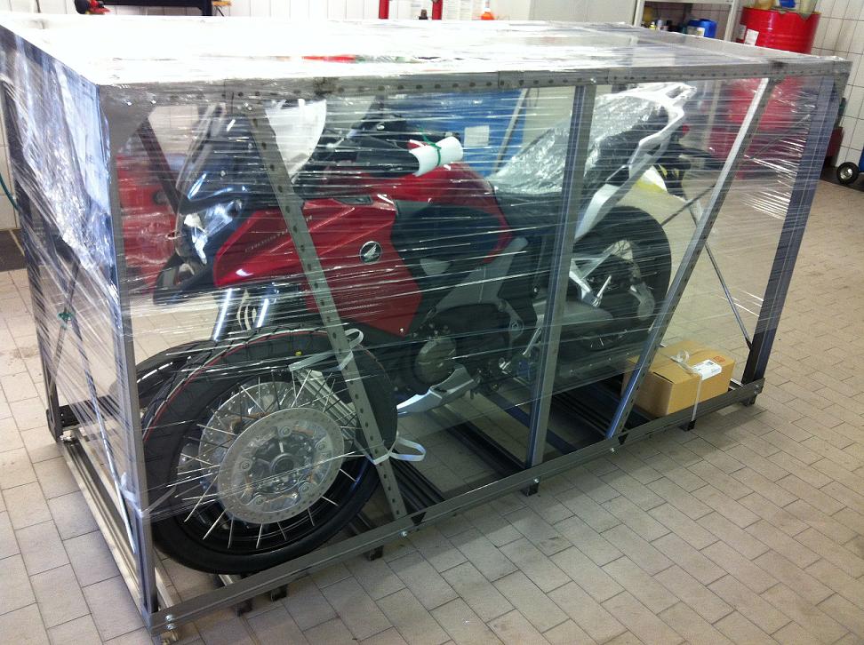 Hab IHN nun in der Garage stehen! 16.00 Uhr abgeholt und 17.20 Uhr vor der gerade nahenden Gewitterfront mit nunmehr 104 km auf'm Tacho zu Hause eingeparkt