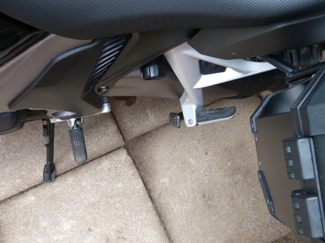 Ich komme an den Hebel am Hauptständer relativ schlecht ran und durch die Koffer ist man logischerweise auch etwas weiter vom Moped entfernt. Mit Gepäck wird es dann sehr schwer die dann geschätzten 300kg aufzubocken.