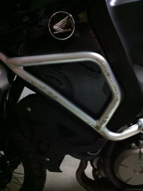 Nicht auszudenken, wenn ich die Sturzbügel (sind die originalen von Honda) nicht dran gehabt hätte - die Investition hat sich schon mal gelohnt. Ich meine, Sturz mit immerhin 40 - 50 Sachen... so viel Schutz hätt ich denen gar nicht zugetraut.