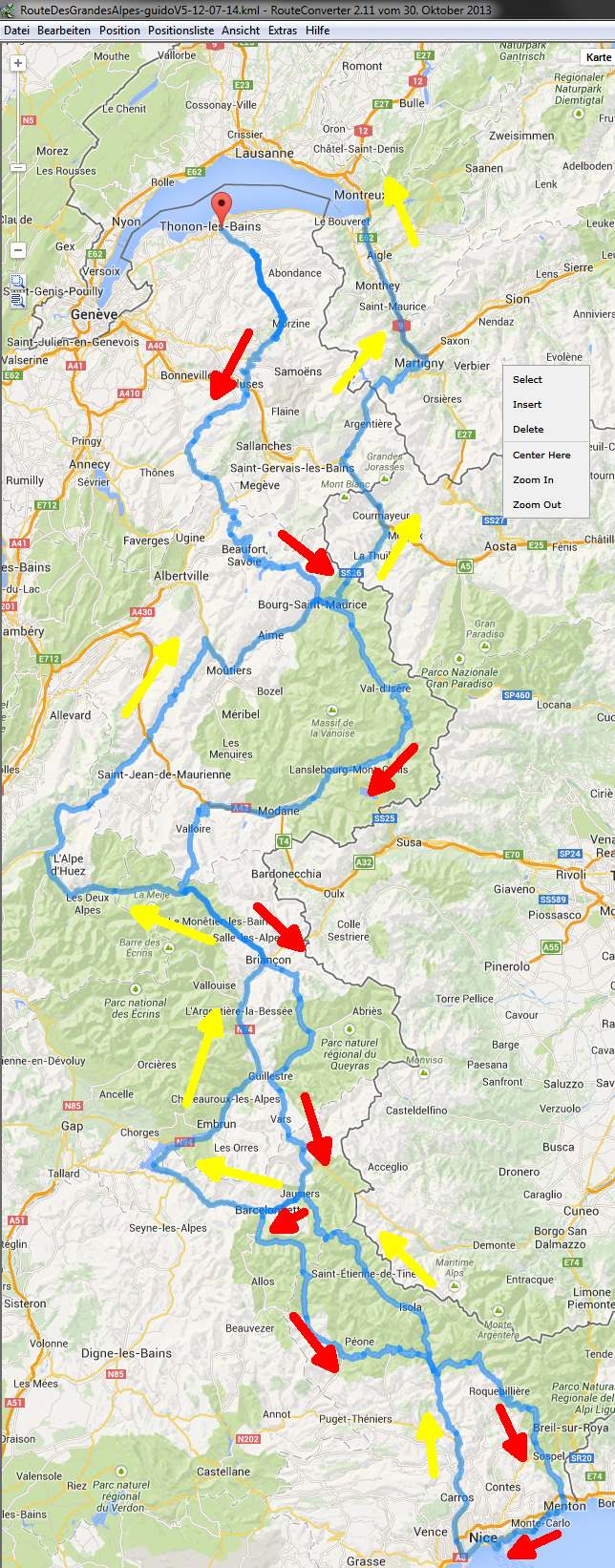 Eines Vorweg….die Route ist DER HAMMER! Alles dabei „was man so braucht“. Kurvenradien und Steigungen in allen erdenklichen Möglichkeiten. Unterschiedliche Alpenlandschaften und deren Eigenarten. Von 1,5GradC bei Schneeregen auf dem Col de l´Iseran bis 32GradC bei strahlendem Sonnenschein an der Cote d`Azur (Menton über Monaco bis zum Strand von Nizza), dichtem Nebel und heftigem Alpengewitter.