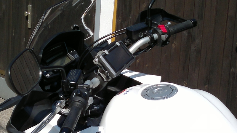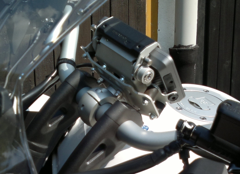 Die Halterung von SW-Motech gefällt mir von der Bauart nicht, und die Ram-Mount Kugel-Halterungen sehen aus wie aus dem Modelbau Kasten.