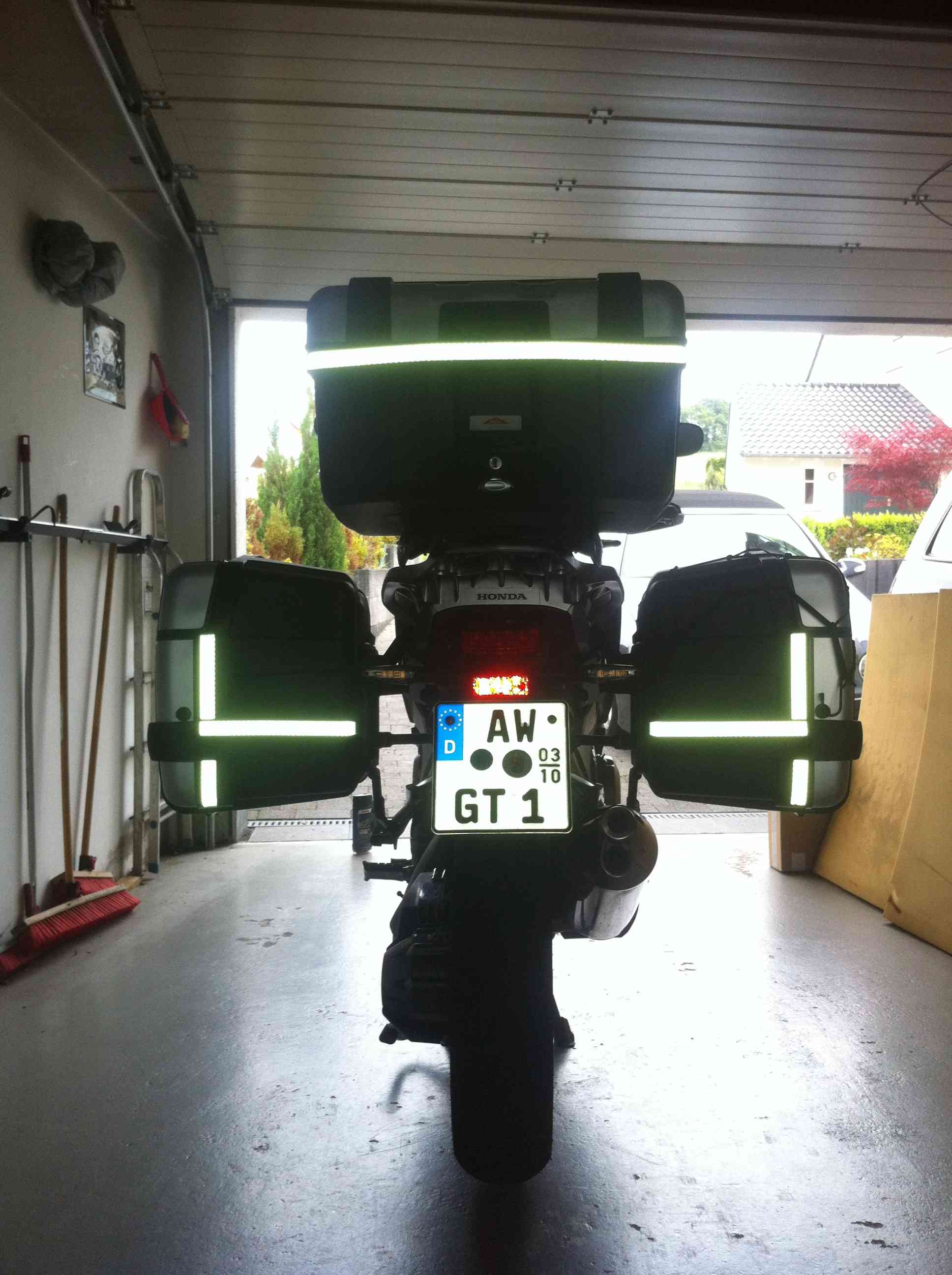 Leider fehlt aber immer noch der entsprechende Kofferträger für die Seitenkoffer. Allerdings soll er in den nächsten 10 Tagen lieferfähig sein lt. meinem FHH und ständigen drängen bei GIVI. GIVI ist wohl etwas langsam was die Entwicklungen für den CT angehen. So warte ich noch auf die GIVI Tourenscheibe (immer noch keine ABE) und den Sturzbügel (...da ich den Honda Dekorahmen nicht mag).