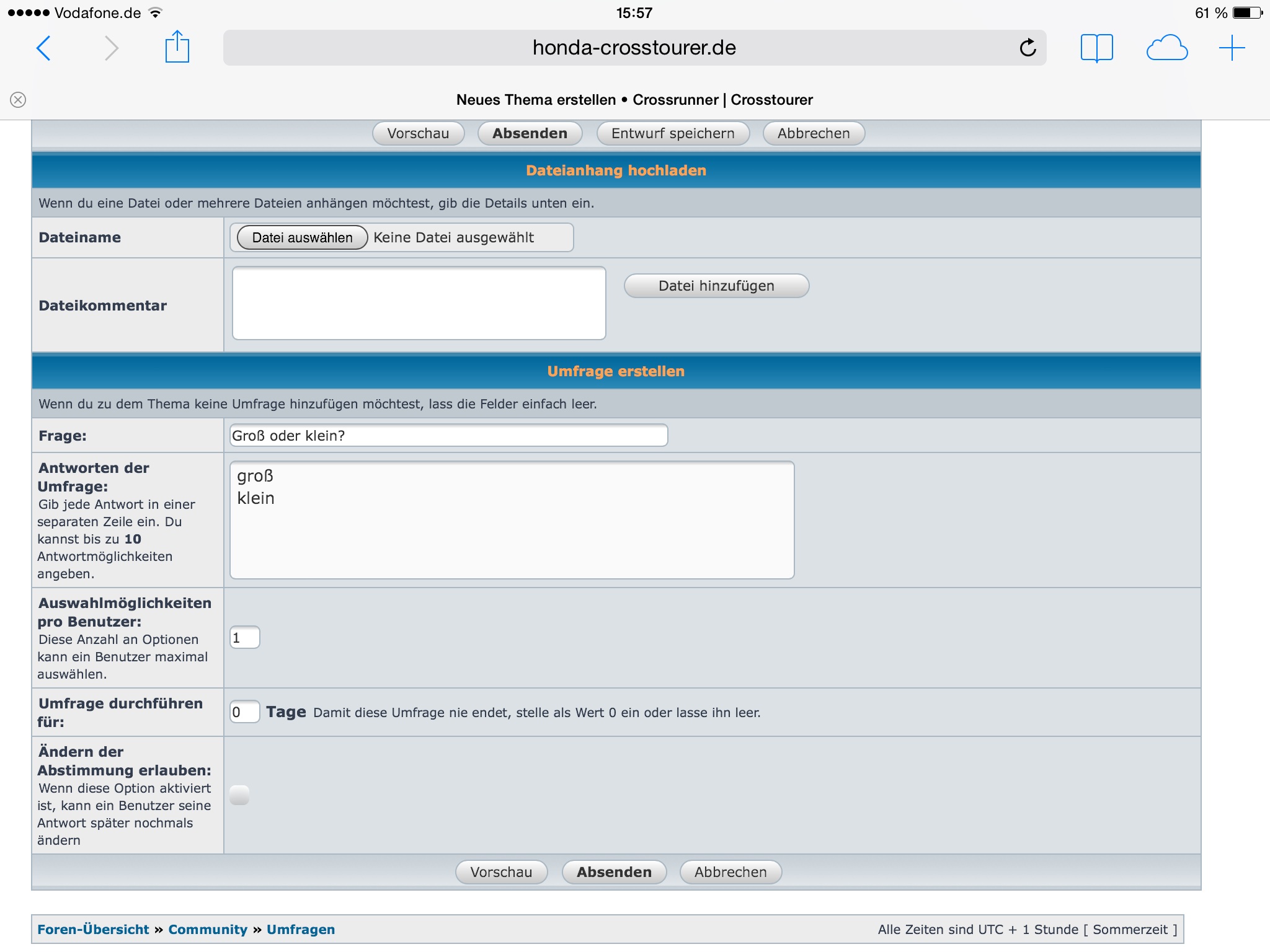 mal ne frage: Ich würde gerne eine Umfrage bei euch durchführen. Wie erstellt man dieses "Fenster" in dem man zur Abstimmung anklicken kann, was für einen zutrifft?