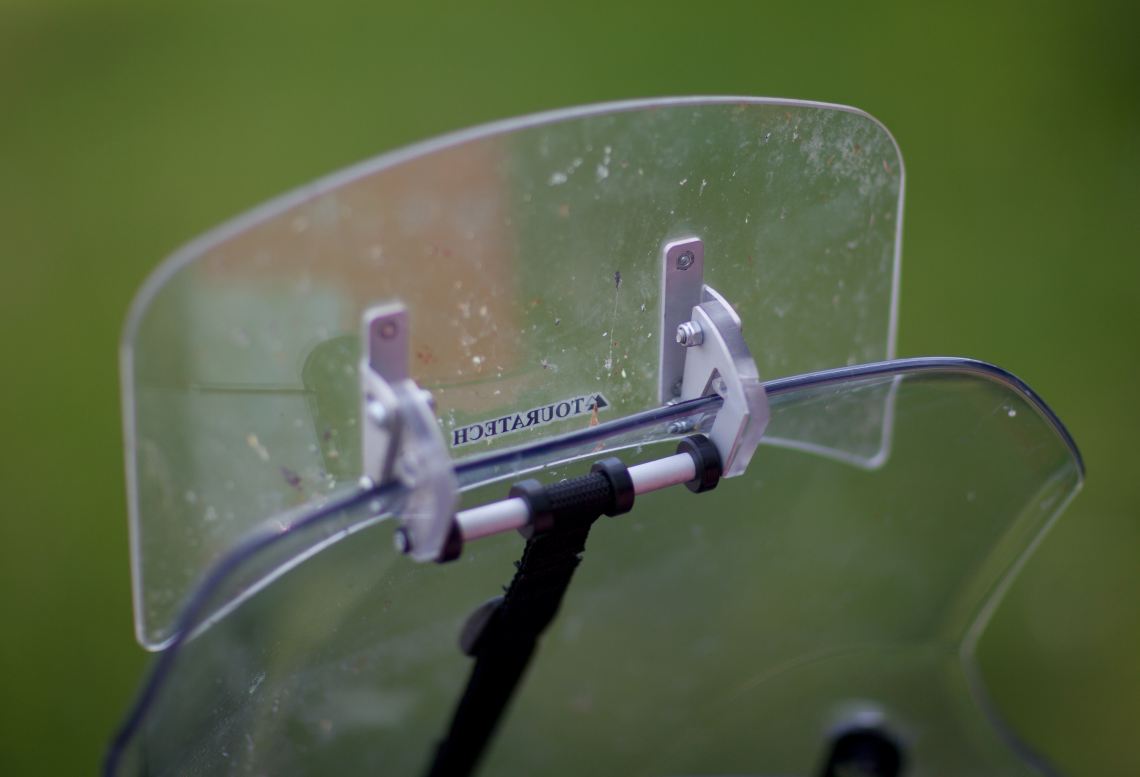 Ich fahre jetzt mit dem kleinen Spoilerteil von Touratech - war eigentlich als "Notlösung" gedacht bis ich die hohe Scheibe bekomme ... aber das Ding ist so gut ich lass das gleich dran. Die Geräusche um die Ohren sind praktisch verschwunden und ich kann auch mit offenem Visier fahren. Den Spoiler hatte ich vorher schon an der AfricaTwin. Genial das Teil möcht ich mal sagen ![]()