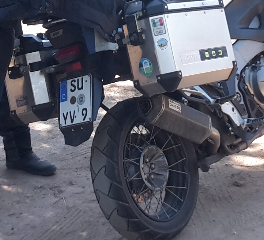 Als Spritzschutz unter dem Kennzeichen benutze ich den von der Triumph Explorer, von Touratech.