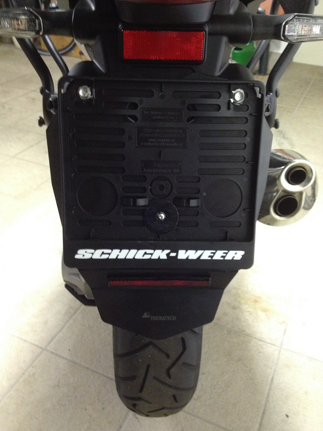Mein Nummernschild hatte schon drei Löcher - also als Bohrschablone auf die Tigerplatte gelegt und gelocht - passt!