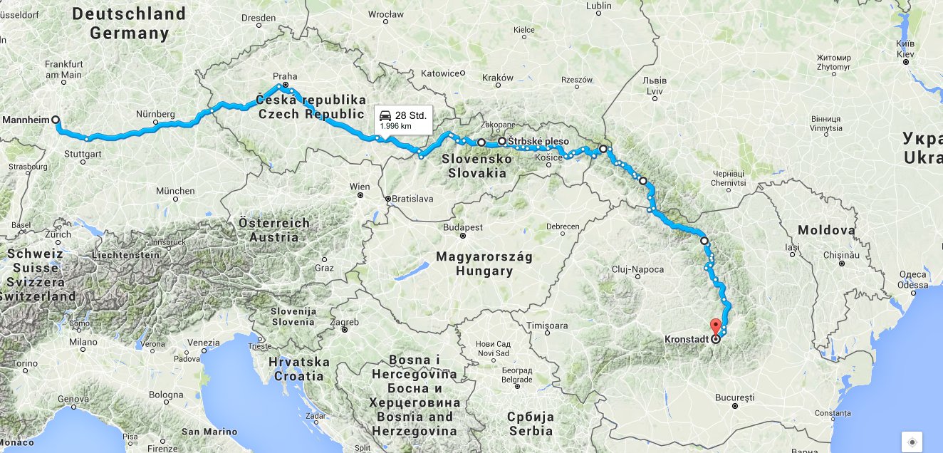 ich muss mal wieder nach Rumänien und habe so tolles Wetter ausgemacht, dass ich vom kommenden Freitag 18. bis Montag 21.09.15 von Mannheim aus hinfahre und Freitag 25.09.15 bis Montag 28.09.15 zurück. Dazwischen muss ich 3 Tage Business in Brasov machen.