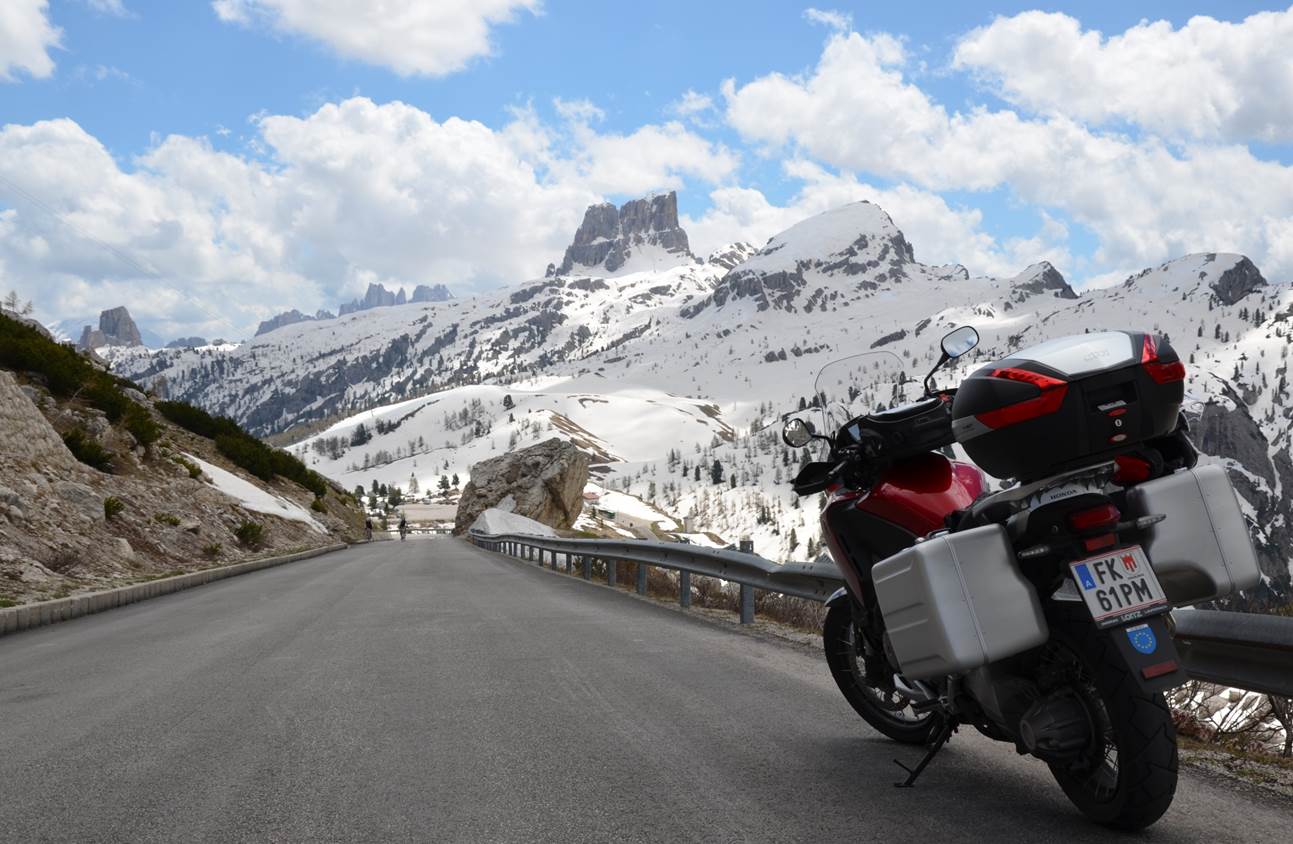 dahinter (über der Straße, mittlerer Hintergrund) die Sorapis-Gruppe.