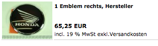 1 Emblem rechts 65,25€ zuzüglich Versand
