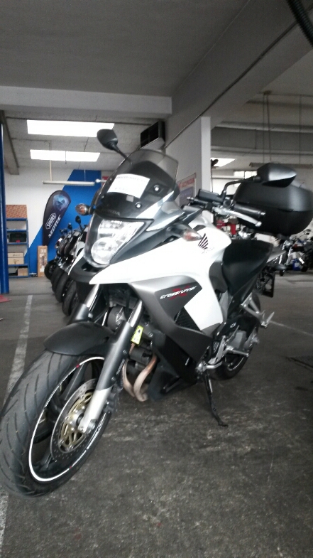 Hab auch einiges geändert, wie Heizgriffe, hohe Scheibe, Tieferlegung, Hauptständer, andere Fußrastenanlage, IXIL Auspuff, Hinterradabdeckung, Koffersatz (komplett), eScottoiler, Chiptuning, andere Sitzbank, andere Rückspiegel mit LED-Blinker und andere Lackierung.