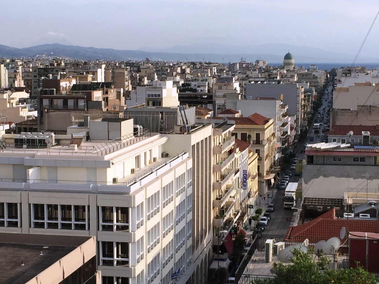 Patras erreichten wir jedoch bei Sonnenschein und im trockenen. Daes jedoch schon 18 Uhr war beschlossen wir eine Nacht in der Stadt zu bleiben. ein schönes Hotel war schnell über "Booking" gefunden. Und im nu saßen wir drei auf der Dachterasse, mit Bar und Pool, des Hotels.