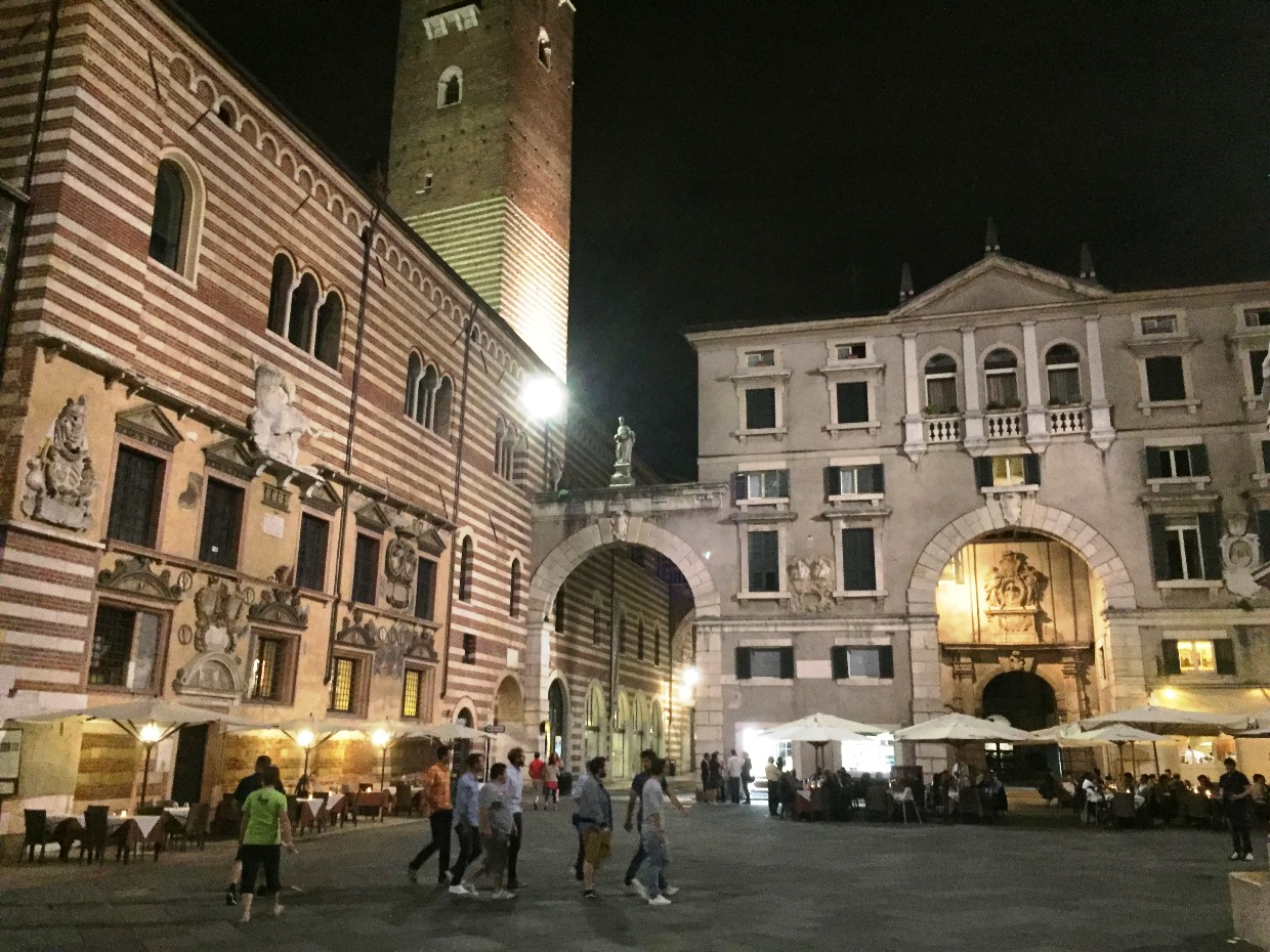 Also ging es auf in Richtung Italien/Verona, wo wir den ersten Abend verbringen wollten. Weit waren wir nicht gekommen, da mussten wir bereits das erste Mal unsere Regensachen überziehen. Was soll es, wir hatten ein Ziel, VERONA. Zimmer waren zentrumsnah gebucht und siehe da in Verona war es angenehm warm und kein Regen in Sicht. Also haben wir uns am Abend die schönen Stadt gegönnt.