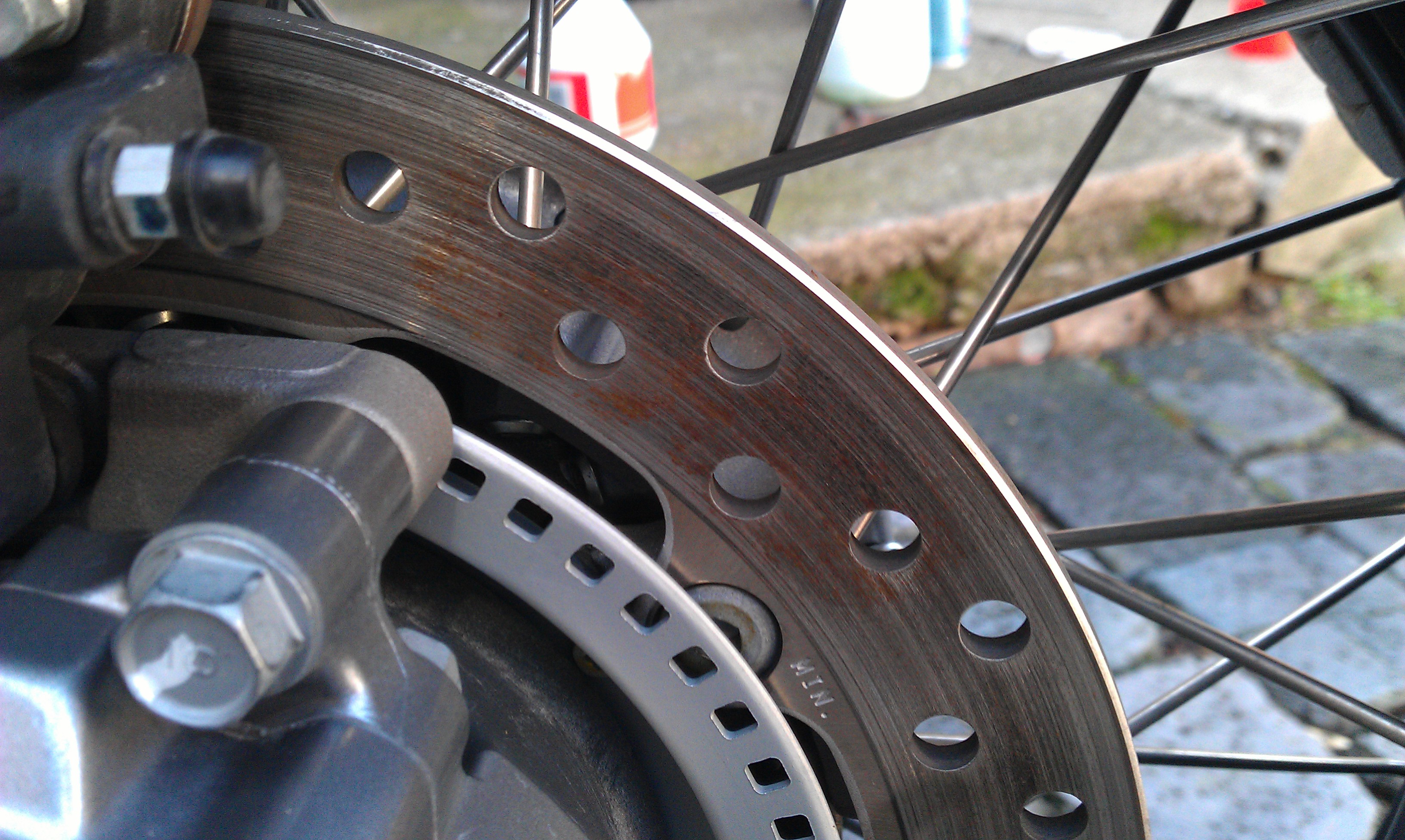 Die CT stand die ganze Zeit. Beim Putzen bemerkte ich dann auf der hinteren Bremscheibe Rost!!!