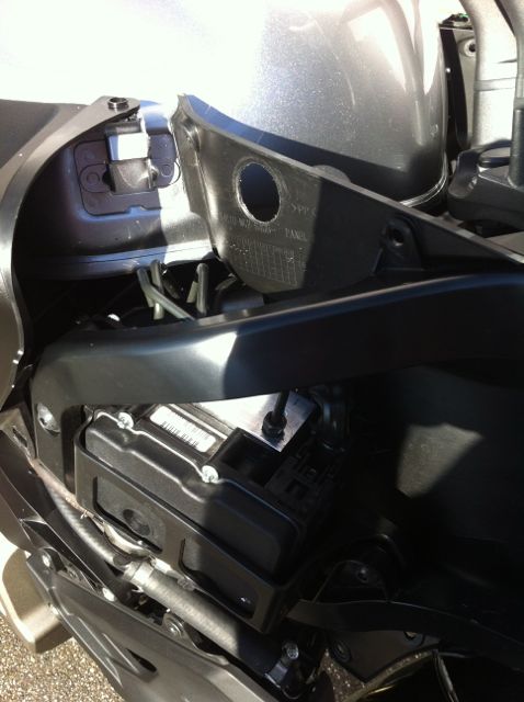So habe mich die Tage noch einmal mit der Steckdose beschäftigt, die in dem Zustand wie ich sie montiert habe (seitlich rechts in der Verkleidung) beim einstecken eines Verbrauchers etwas nachgegeben hat. Sprich die Plastikverkleidung gab etwas nach, weshalb ich das ganze mit einem Alublech verstärkt habe. Bei der Gelegenheit habe ich auch gleich noch ein paar Bilder zum Einbau gemacht, damit es etwas verständlicher wird.