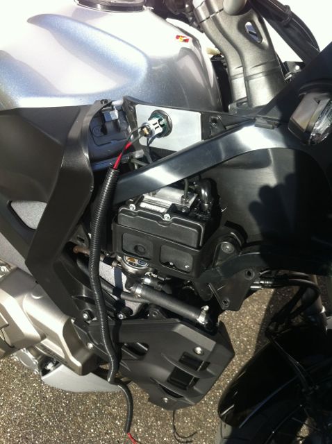 Der einzige Schwachpunkt ist der Bereich wo der starke Knick ist, da wo der kleine Plastikstopfen die Verkleidung fixiert. Hier bin ich am überlegen ob ich das Blech nicht an dem Halter des Tank fixiere, dann würde da nichts mehr nachgeben.