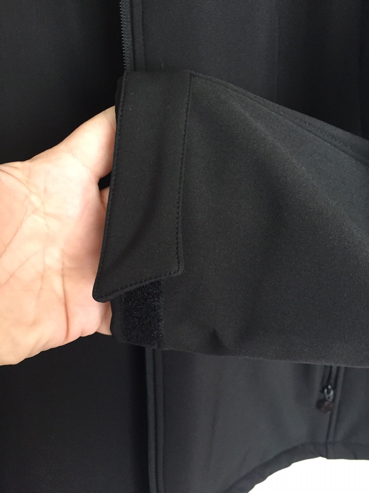 > Armbündchen verstellbar durch Klettverschluss.