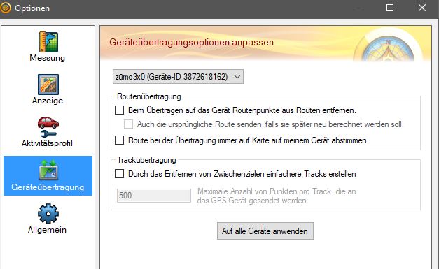 Zitat von citykurierAlles anzeigenIch habe nur das Zumo 340 und das hat keine "kurvigenreiche Strecke" sonder nur "kürzeste" oder "schnellste". Da ich aber in BC mit "kurvigenreiche Strecke" die Route plane, kann Zumo die Route nicht so übernehmen und zerhaut mir meine schön geplante Route.