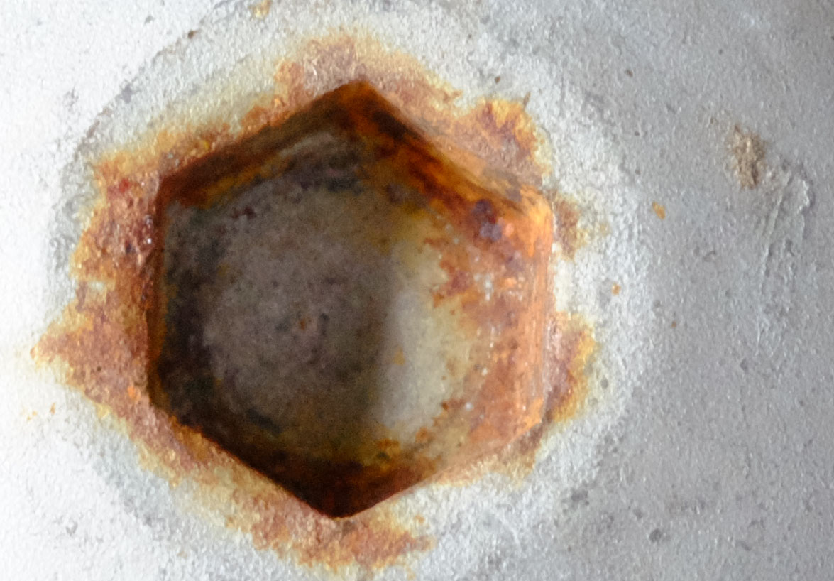 Er notiert meine "Beschwerde", vergibt eine neue Bearbeitungsnummer und nimmt meine Anmerkung auf, das es sich nicht um Verblassen sondern um Rost handelt...