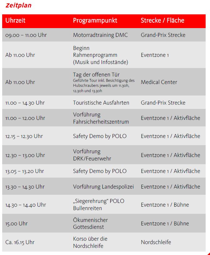 [attachment=0]Nürburgring Anlassen 2018 - Zeitplan.jpg[/attachment]Ich werde dieses Jahr wieder mit meinem Sohn vorbeischauen und