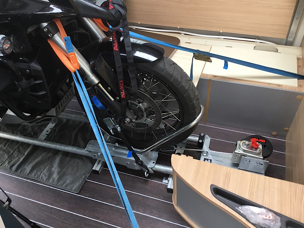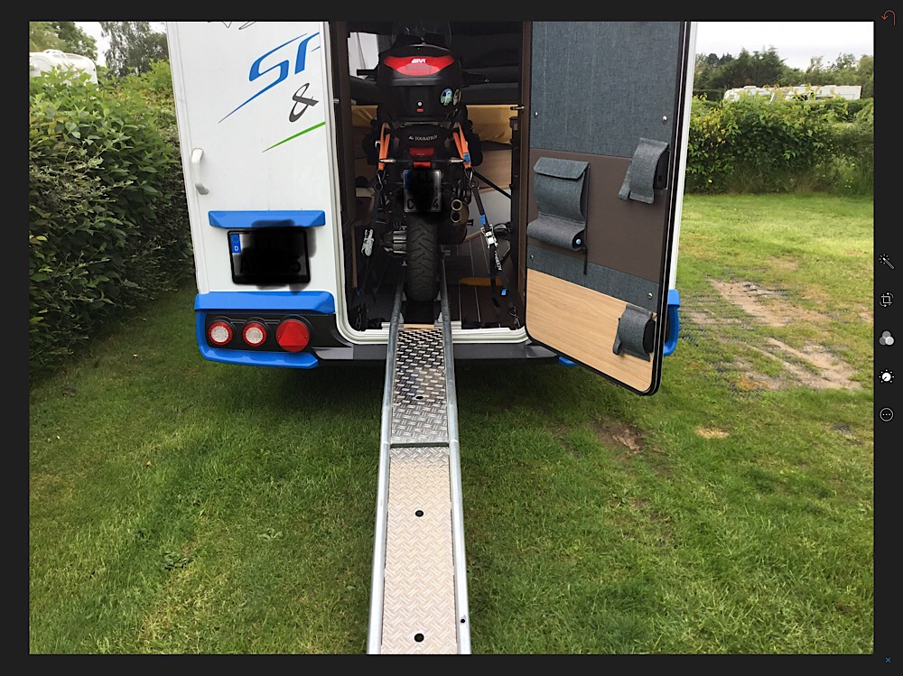 Ja, ich mach die Handschützer lose die Lenkergewichte raus und dreh die Spiegel rein. Mit herausnehmbaren Schienensystem schaffen wir das in 10 Min ein-oder ausladen.