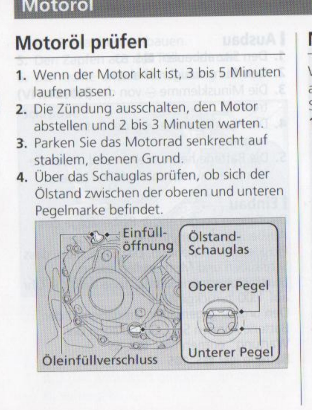 Wenn der Ölstand im Herbst gepasst hat, dann ist er jetzt auch noch ok. Wenn wirklich so viel fehlen würde, kannst Du es an einer sehr großen, sehr feuchten Stelle unter dem Motorrad erkennen ;)