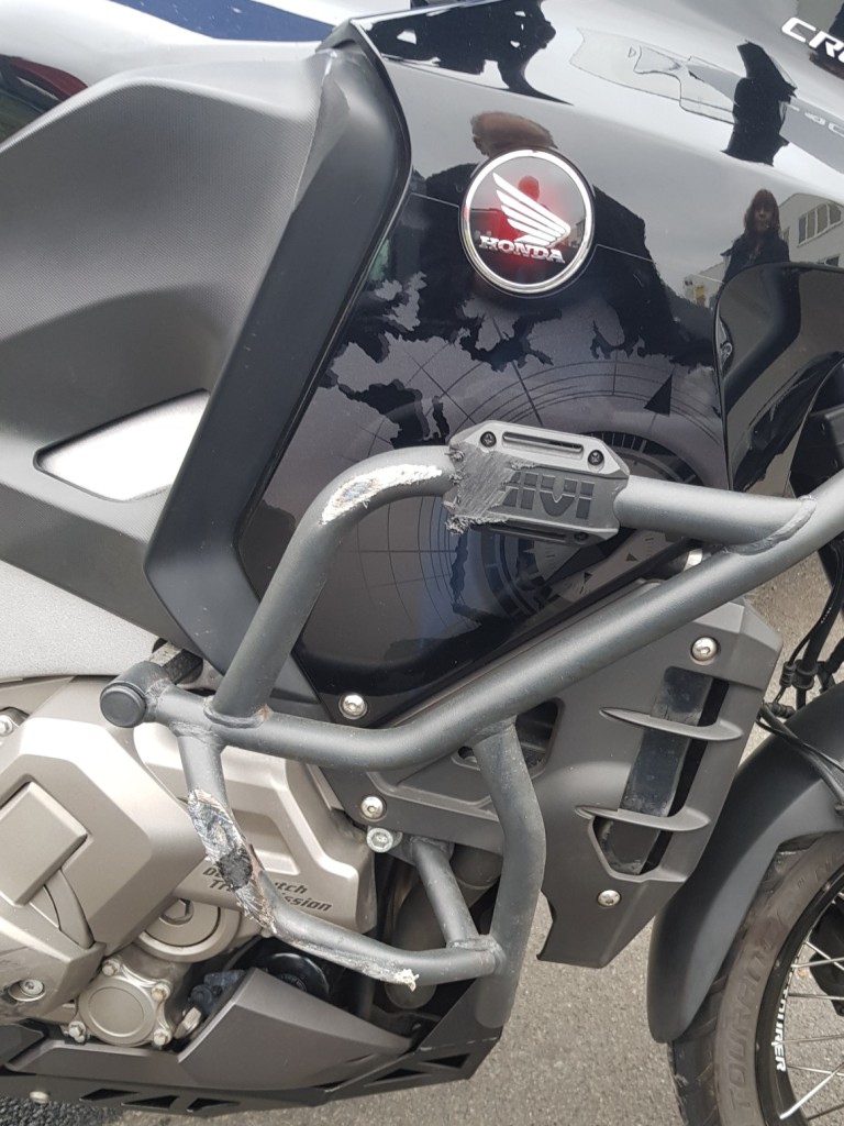 Nun Schulter stark lädiert, erfahre Montag wie es weiter geht. Motorrad steht jetzt bei Honda und werde sehen was kommt. Aber der Bügel hat viel Schaden abgehalten. DCT Deckel ist kaputt, Knie Windanweiser auch an der oberen Ecke. Aber sonst sah es vorne rum gut aus. Denke er ist sein Geld wert.