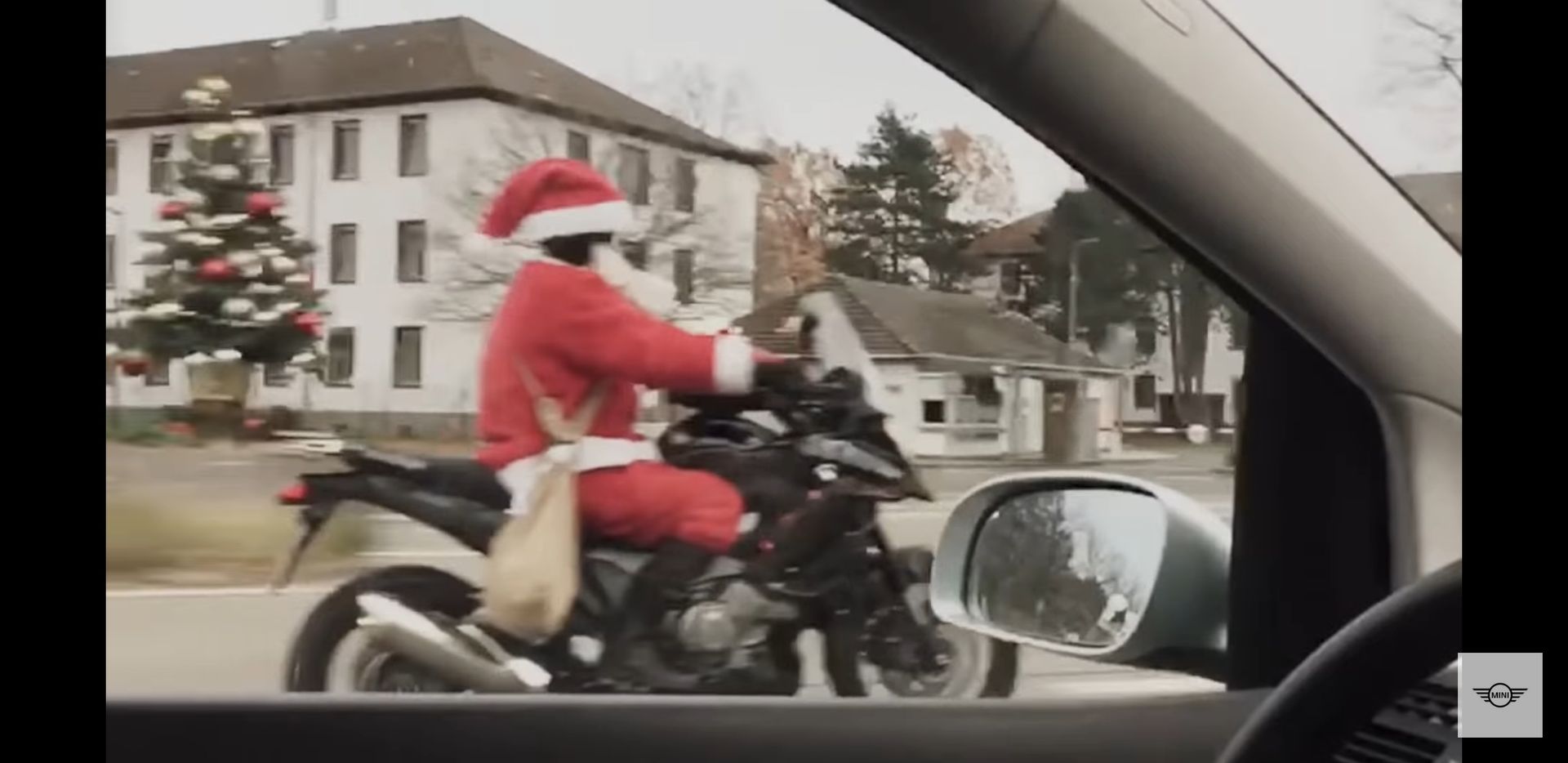 Durch genaues Hinsehen meine ich, den Weihnachtsmann mit Baum auf einem Crosstourer zu sehen.