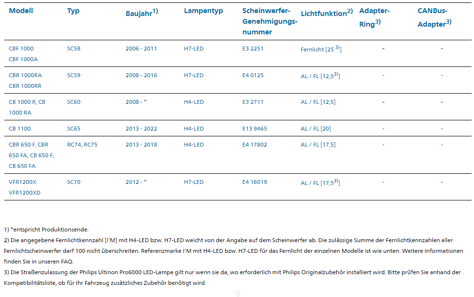In die CBF 1000 meiner Frau werden sie Philips beim nächsten Service eingebaut, da sind sie mittlerweile legal zugelassen!