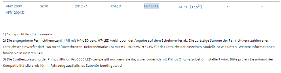 Ich trage mich mit dem Gedanken das neue LED Licht von Philips die Ultinon Pro6000 LED einzubauen. Die Hinweise mit den Standlichtern werde ich dann sicher auch berücksichtigen. Danke dafür. Jetzt gibt es zwar eine allgemeine Zulassung für die Crosstourer aber nur wenn die Scheinwerfernummer die richtige ist. Ich habe mal etwas von Philips angehängt