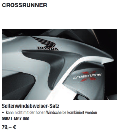 #24 Alles anzeigenHallo , ich habe zu dem Teil auch mal eine Frage. Ich habe eine VFR 800 X Crossrunner. Passen da vielleicht auch die Teile ?