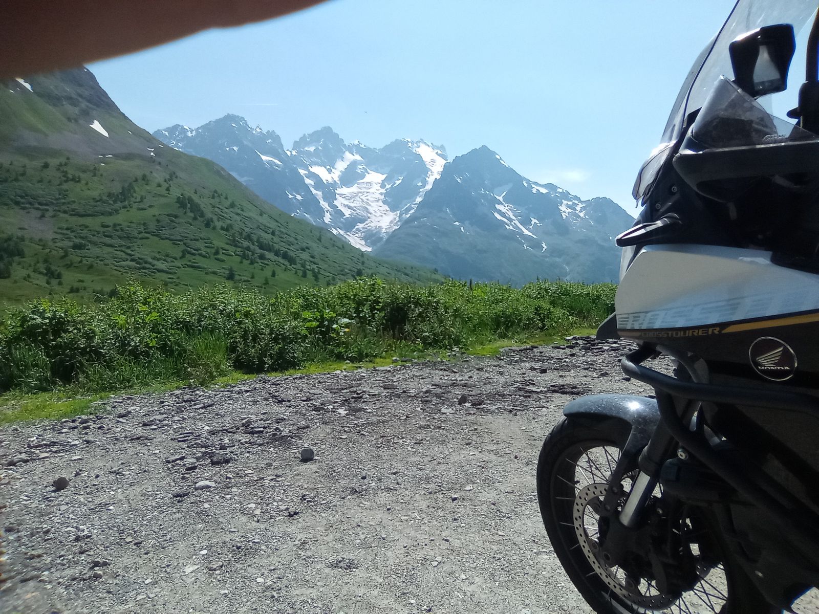 .....also ab übern Iseran südwärts......nach 3 weiteren Pässen sagt meine Frau via Bordsprech:"irgendwas stimmt mit der linken Fußraste nicht !"
