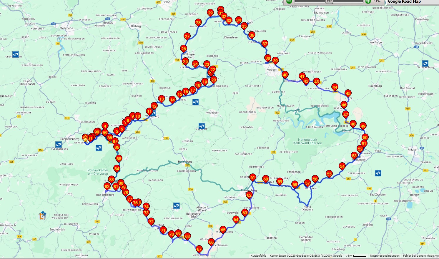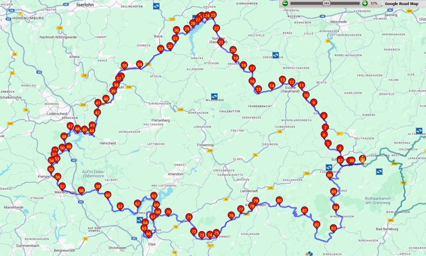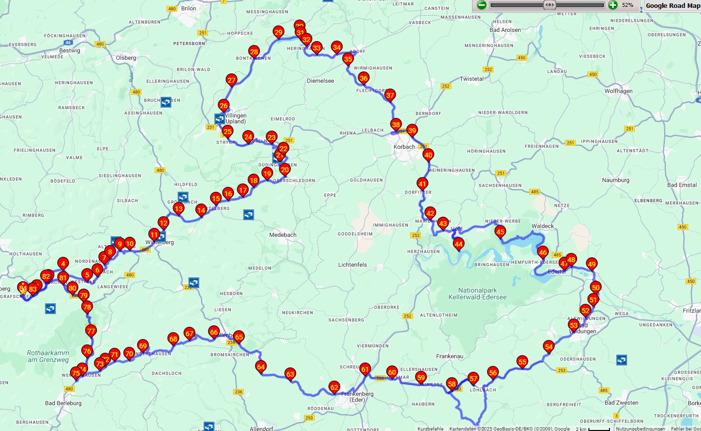 Ich hab mir mal drei Routen überlegt, alle drei so um die 220 KM (ohne Umleitung wegen Baustellen). Ich versuch mal, sie hier als Bild einzustellen, wer will, kann sie sich ja mal anschauen. Ich hab auch die dazugehörigen gpx (Garmin) oder itn (TomTom) Dateien, da hab ich aber keine Ahnnung, wie man die weiterleiten könnte, Hier geht es offensichtlich nicht.