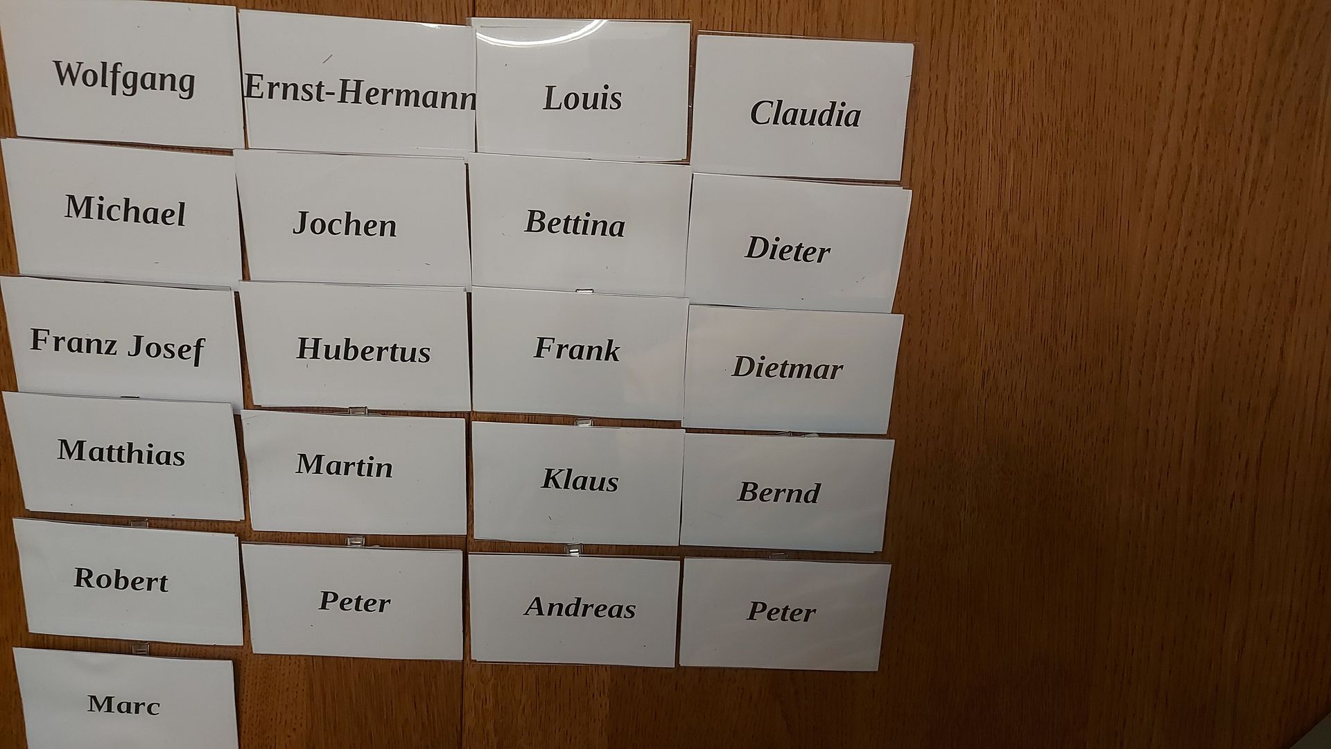 Ich schlage vor sich ein kleines Namensschild anzustecken, dass macht das Ansprechen einfacher. Vorname dürfte reichen, oder :rolleyes: