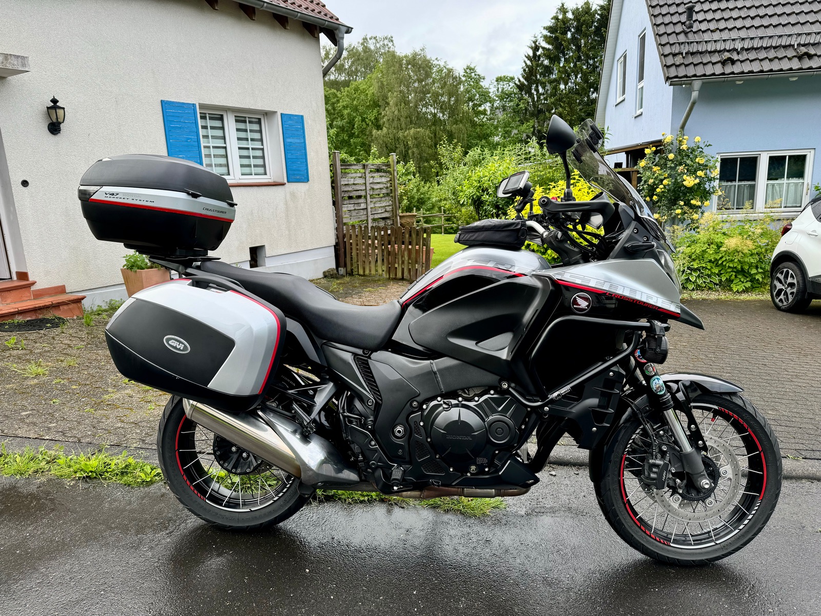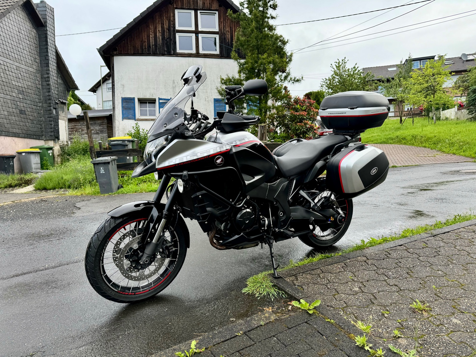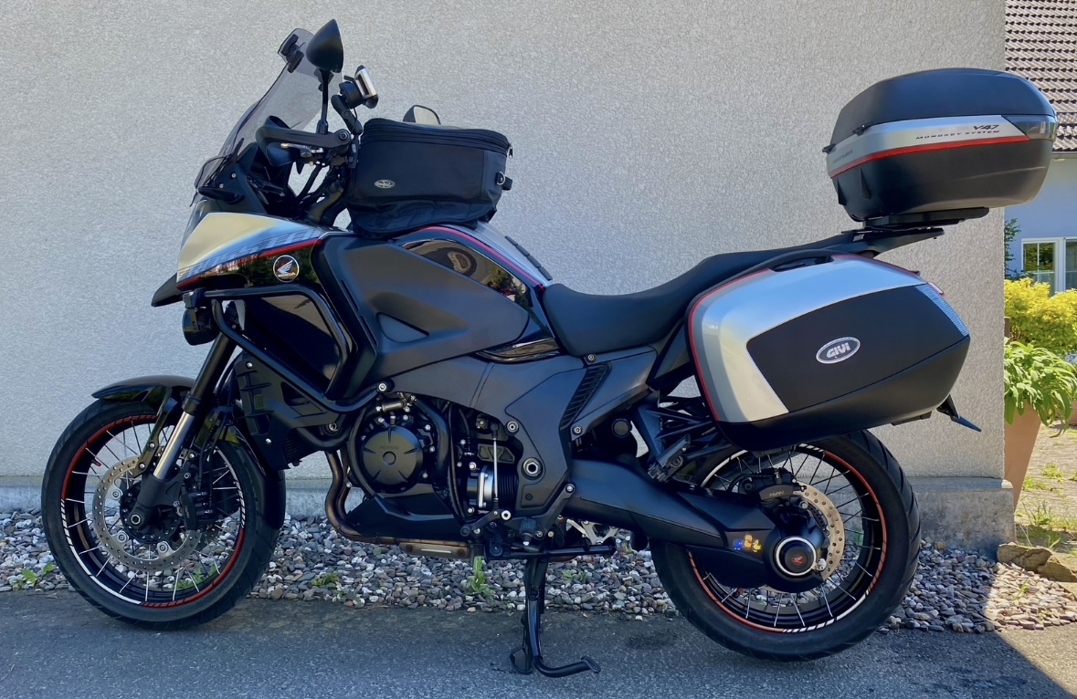 Biete hier meine geliebte Crosstourer (Schalter) mit Vollausststtung an. Givi Koffersatz und Topcase mit Innentaschen, abnehmbarer Träger (Bajonett), Tankrucksack klein und groß, hohe Scheibe mit Spoiler, Kardan- und Federbeinschutz, Fenderverlängerungen v/h, zusätzliche Steckdose im Cockpit, Zusatzscheinwerfer SW Motech Halter, H&B Sturzbügel, TomTom Navi an RamMount Halter, Felgendekor, knapp 50.000 km, checkheftgepflegt, (teure) 48.000 Inspektion gerade gemacht, reines Sommerfahrzeug, mit Q-Tips gepflegt, im Höchstfall leichte Gebrauchsspuren, Lack und Kunsstoffe 1A, umständehalber und mit einem Tränchen im Auge kurzfristig aber komplett in gute Hände abzugeben, Forumspreis war VB 9.999