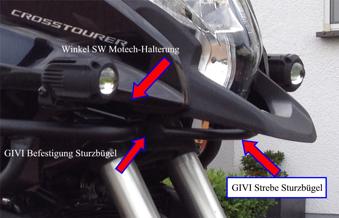 ich möchte meine Black Pearl durch die Hawk Nebelscheinwerfer der Firma SW Mototech ergänzen. Leider scheint mit die Lösung mit den Universalhalterungen für die Sturzbügel sehr unglücklich zu sein, da die Scheinwerfer bei korrekter Montage an den Seitenverkleidungen scheuern.