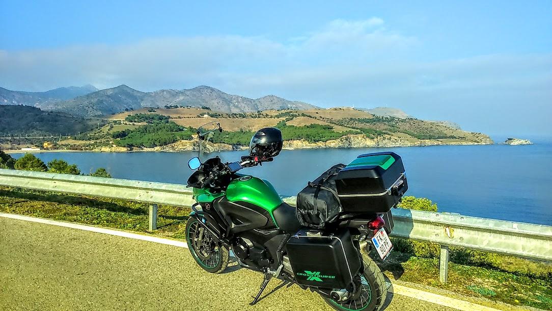 Honda Crosstourer silber Bj.12 mit Schaltgetriebe, Eigenbau-Gepäckbrücke, Hauptständer, kleine getönte MRA-Scheibe, Endurofußrasten, Motorschutzplatte, Steckdose, aufgepolsterte Sitzbank von Jungbluth, Oxford Griffheizung, Becker-Navi und Lenkererhöhung von Voigt