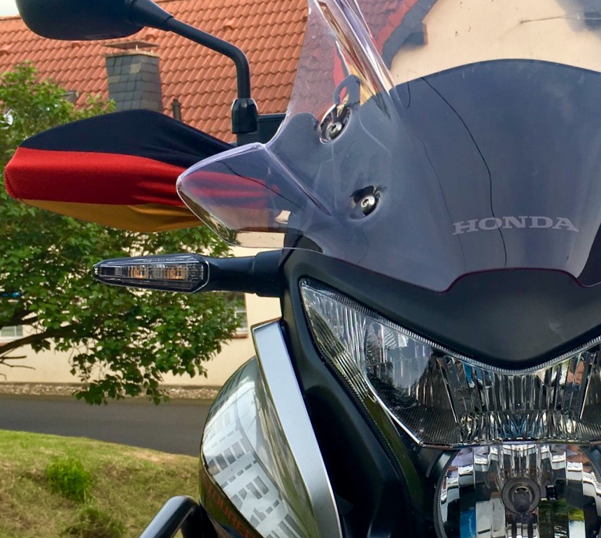- Spritzschutz von hinten mittig auf/unter Kennzeichen kleben (Klebepads; Einkerbung mit Nase überein; siehe auch Foto von mir weiter oben)