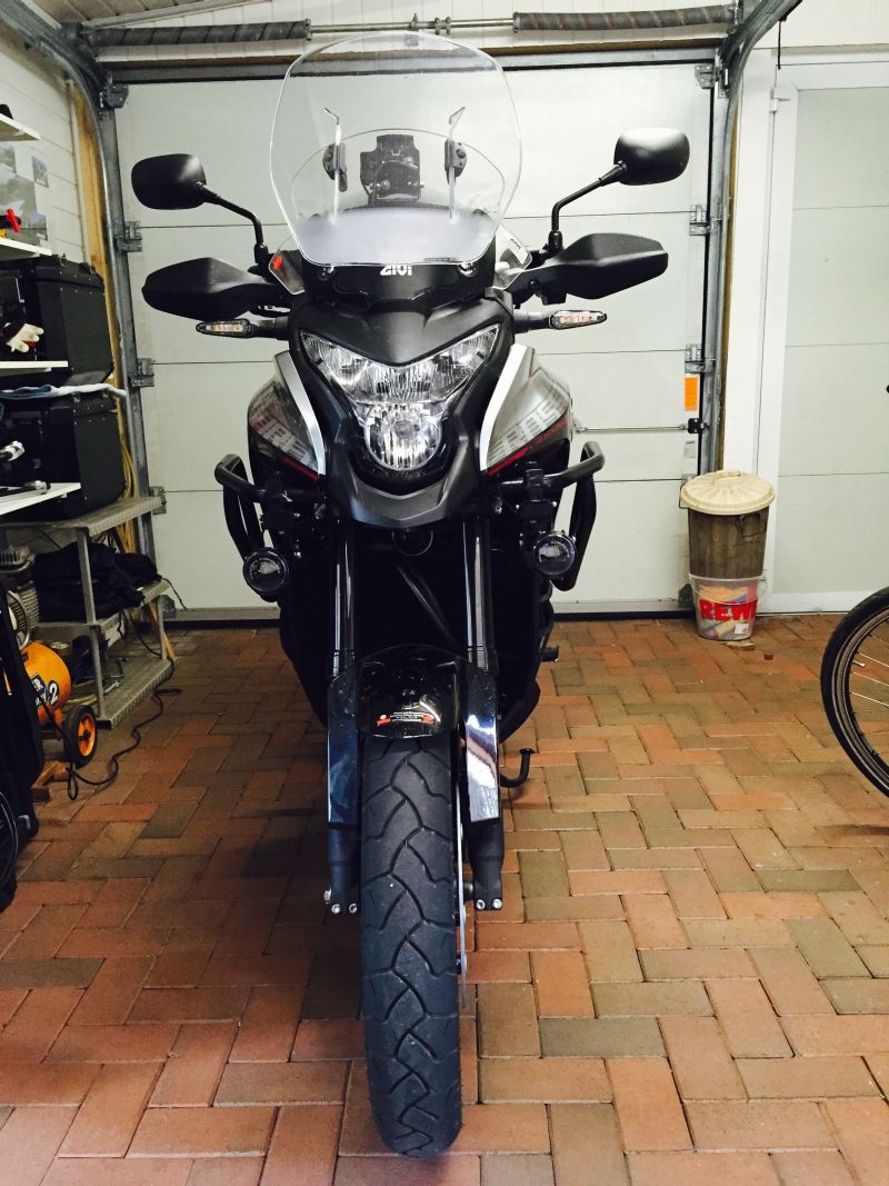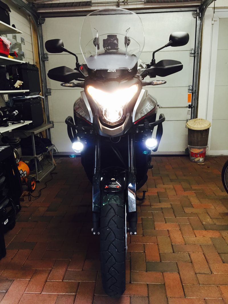 Nebelscheinwerfer von Touratech. Habe sie beim Fahren immer eingeschaltet. Seit über zwei Jahren u mehreren Kontrollen durch die Rennleitung sowie TÜV keine Probleme. Andere Mopedfahrer betonen, das ich schon im Rückspiegel auch aus Entfernung signifikant besser zu sehen bin. Das ist für mich erstmal entscheidend.
