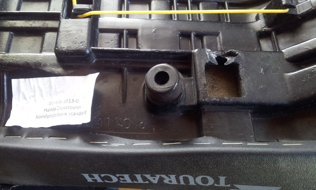 Kleine Überraschung (hat wohl nichts mit Touratech zu tun) beim ummontieren der Gummis: An zweien der rechteckigen Auflager-Gummis waren die Noppen zum Teil abgerissen. Bin gespannt, wie lange der Klebeversuch an den Noppen hält.