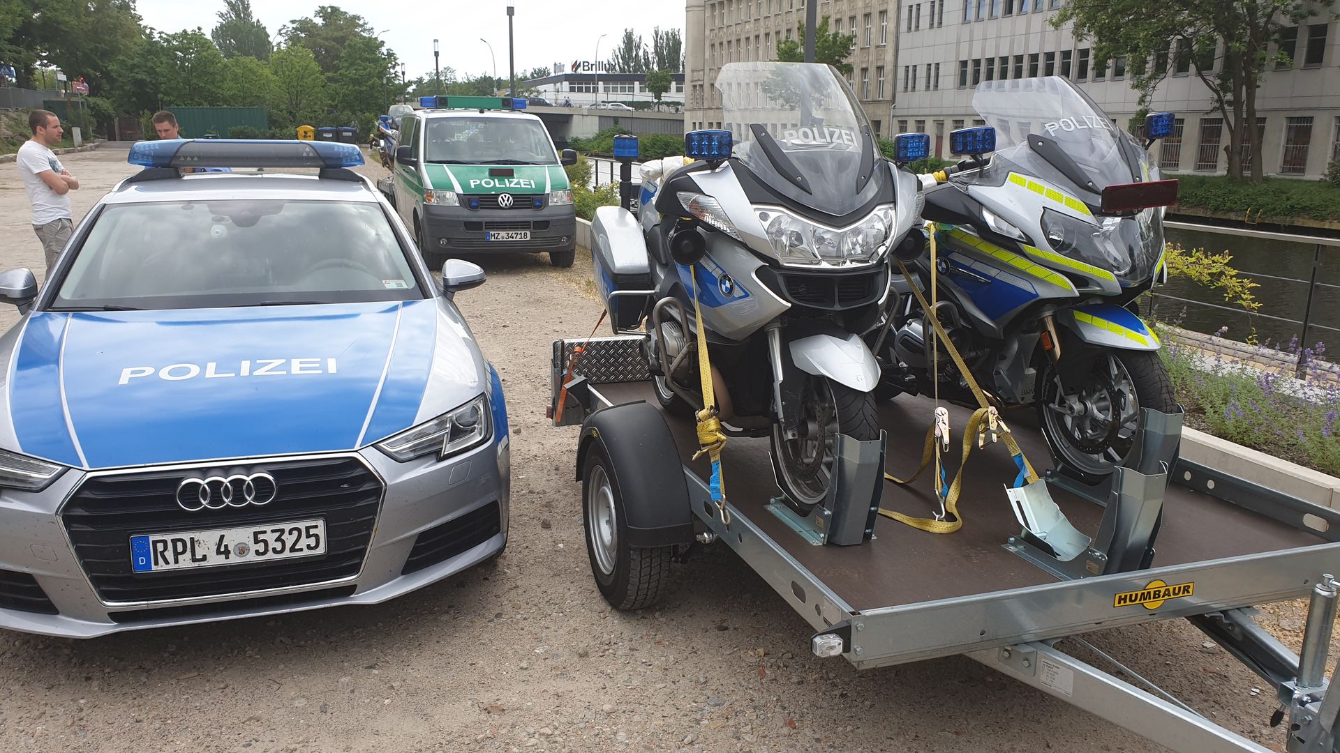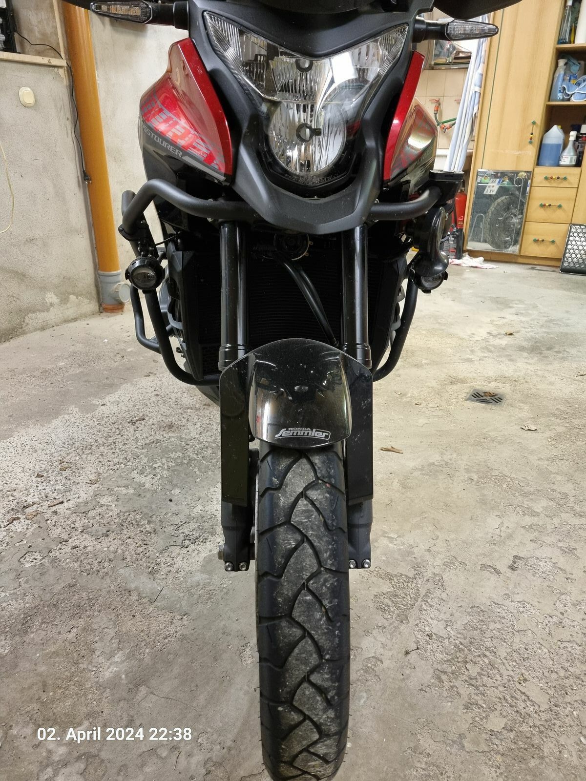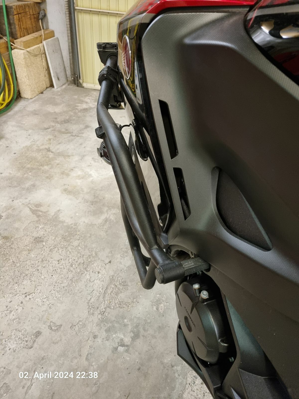 Ich hatte mir mal Zurrgurte für den Lenker angeschafft (im Bild die gelben Gurte) und dachte das wird super. Leider hat mir der Gurt an der damaligen CBR 1000 F fast die Schalter an beiden Griffen ruiniert. Bin deshalb wieder davon abgekommen und nutze nun die untere Gabelbrücke mit Vorderradwippe. Hinten Schlupf um die Kofferhalter und den Gurt dann etwas nach vorne einhaken, um die Maschine in Fahrtrichtung zu ziehen. -