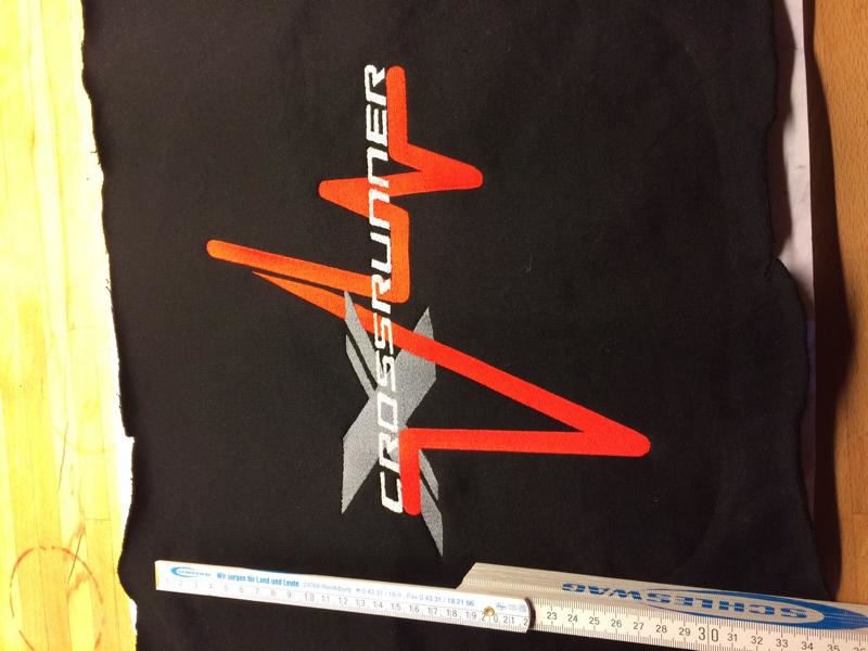 War heute mal wieder bei der Stickerin und habe den Probestick vom Crossrunner abgeholt finde der sieht Top aus