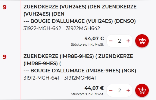 das nur komplett in den Ersatzteillisten auftaucht. Bei Honda gibt es daher auch keine