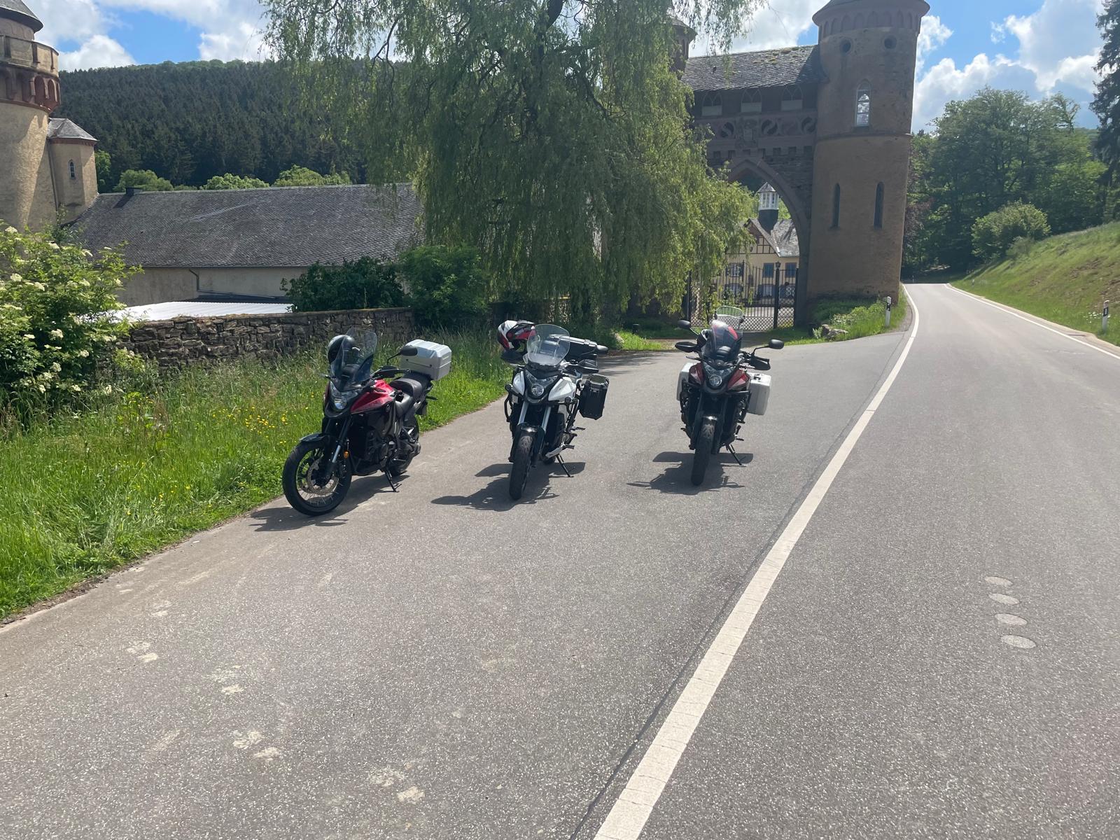 Am Tag vor der Tour hat der erste Kollege die Tour aus persönlichen Gründen absagen müssen und leider 2 km vorm Ziel auf einem Parkplatz nach sehr viel Lobpudelei über unsere geilen Mopeds sprang die Maschine von einem Kollegen leider nicht mehr an und musste von ADAC abgeholt werden. Im nachgang hat die Werkstatt einen Kabelbruch zum Anlasser festgestellt! Somit hatten allerdings das Glück, das wir den verregneten Freitag dann mit dem Auto eine schöne Tour gemacht haben. ( Immer aus Scheiße das beste machen ). Am Samstag haben wir dann alle noch ein schöne ausgiebige Tour gemacht, mit dem Kollegen als Sozius! Am Sonntag dann alle mit reichlich Wein von Haus und Hofwinzer im Gepäck (Auto 😅) wieder nach Hause. Alles in allem haben wir aus dem schlechten Wetter das beste gemacht so das wir noch nicht einmal unsere Regensachen auspacken mussten. Geplant ist, dass wir nächstes Jahr auf jeden Fall wieder an die Mosel fahren.