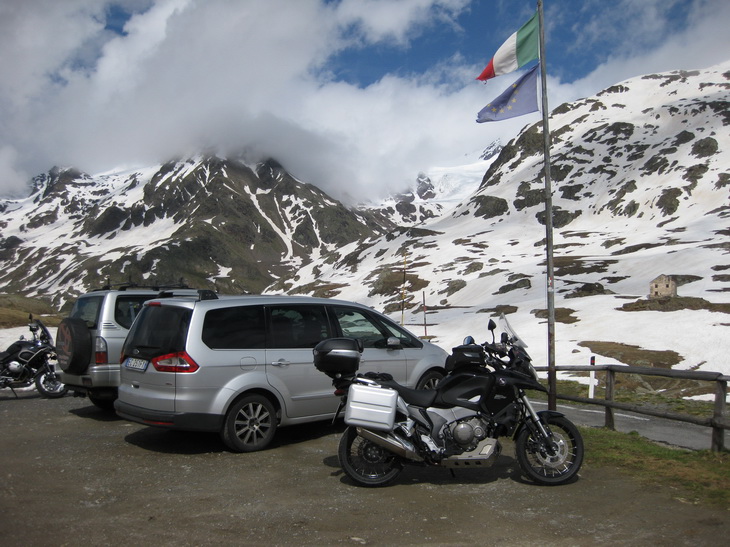 Natürlich wieder Mailand. Diesmal keine Mädels am Straßenrand, sondern Blitz, Donner, Wolkenbruch und Stau ohne Ende. Wie kommt man in Italien durch einen Stau? Man warte auf einen Rollerfahrer und dann nix wie hinterher. Ok, der Erste hat mich abgehängt, ein Crosstourer ist eben kein Roller. Aber in die nächste Rollerkolonne konnte ich mich einreihen und so ging es locker, flockig, im Wolkenbruch durch den Stau, bis…nichts geht mehr. Carabinieri links und rechts. Natürlich trocken in ihren Autos sitzend. Doch scheinbar hat alles mit zwei Rädern in Italien Narrenfreiheit, deshalb flux vorbei und dann sah ich das eigentliche Problem! Unterführung überschwemmt… und die Carabinieri sitzen im Trockenen und schauen dabei zu, wie die Autos absaufen. Aber Zweiräder haben immer noch dazwischen platz. Nun kam die Stunde des Crosstourers! Wusstet ihr, dass Roller schwimmen!?! Ab einer gefühlten Wasserhöhe von 50 cm reichen die Räder der Roller nicht mehr bis zum Boden und so sah ich einige tauchende Roller inkl. Fahrer. Gut dass mein Grinsen unter dem Helm nicht zu sehen war.