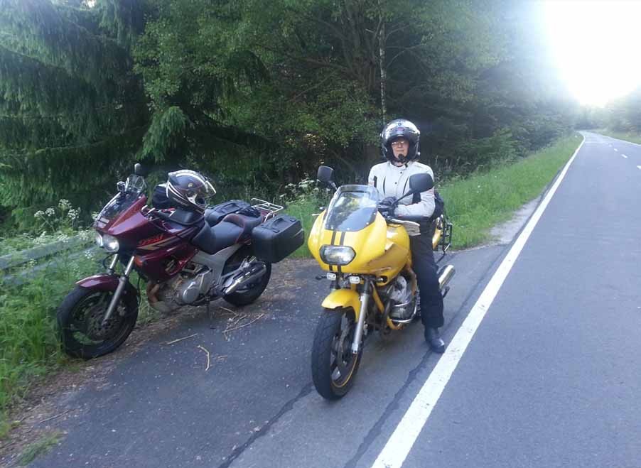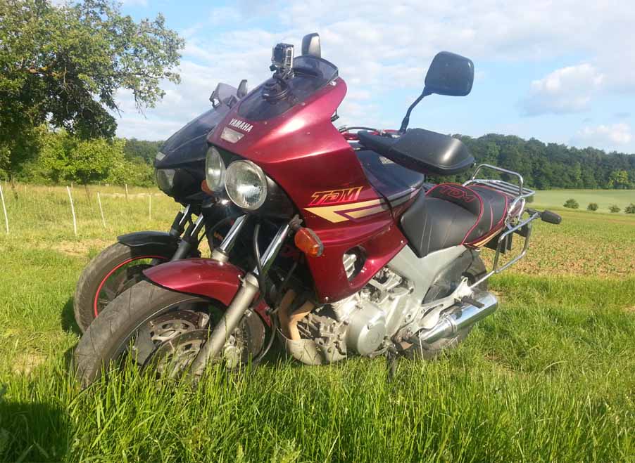 Seit Ende Februar bin ich glücklicher Besitzer einer "neueren" TDM. Leider hatte dies einen kleinen Unfallschaden ( Auffahrunfall - Gabel / Felge / untere Gabelbrücke defekt). Konnte alle defekten Teile von meiner Alten abbauen und wieder montieren. Wärend der "Standzeit" wurde gleichzeitig der Vergaser von Topham überholt und die Sitzbank aufgepolstert. Außerdem wurden neue CRA2 Evo (Hammer Reifen!) aufgezogen. Weiteres Zubehör welche angebaut wurde: LSL Touring-Lenker, Navihalterung (selbstbau), BMW Handprotektoren und eine KEDO Kombininstrument. Nach 2 Monaten konnte es pünktlich zum Saisonstart losgehen. Nun konnte ich schon 3500 km ohne Probleme abspulen (läuft echt super die Kiste).
