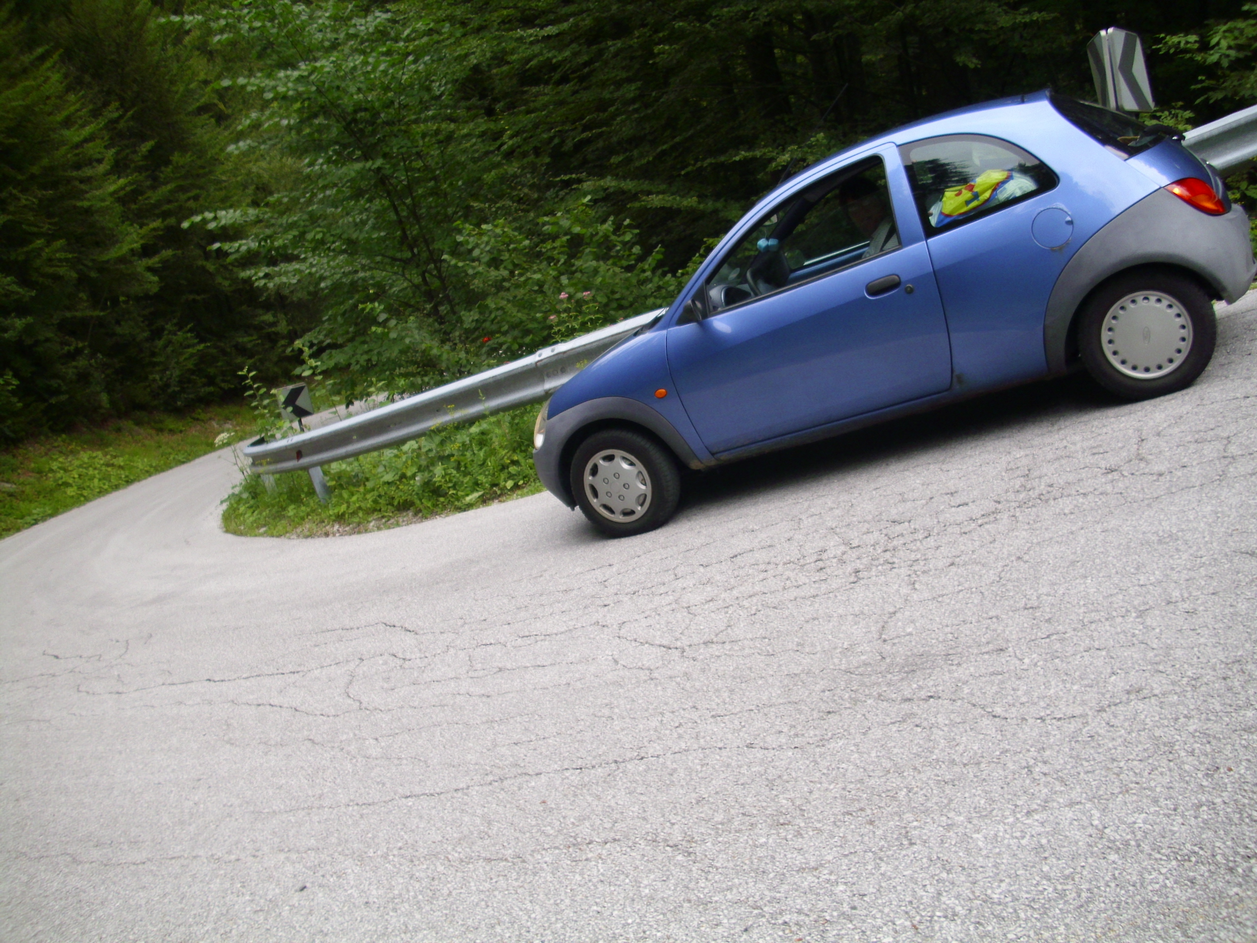 Also hies es in Österreich & Slowenien==> Landstraße, Landstraße & nochmals Landstraße. Erst 12% (3. Gang 50 Kmh), dann 15% (2. Gang 30 Kmh) und am Wurzenpass 18% (1. Gang - 10 Kmh) Steigung. Unser vollbeladener Ford Ka mit 50,7 PS hat dort richtig schön das Kot*en bekommen.