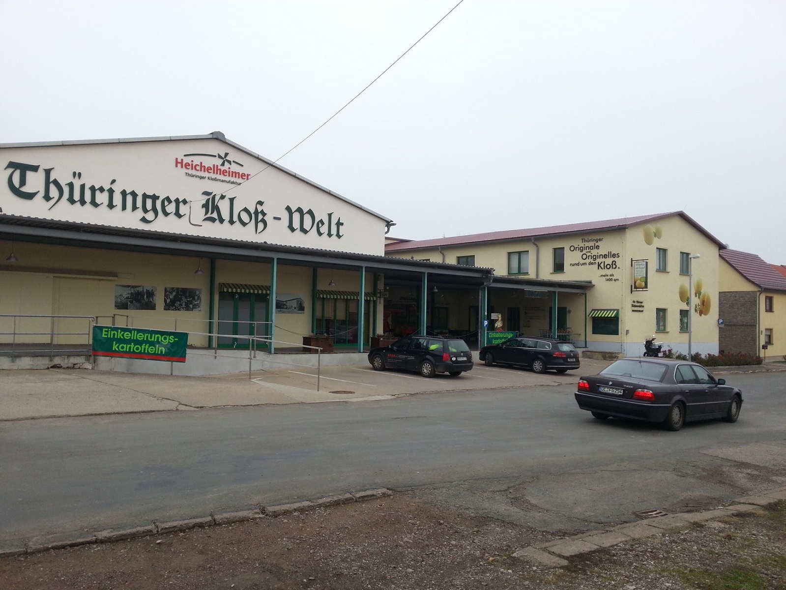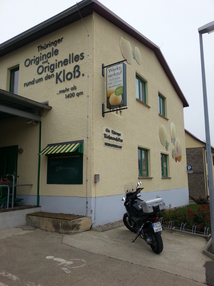 heute war's trocken bei ca. 3° und nur ganz leichter Nebel, da hab' ich eine kleine Runde gedreht; ins Weimarer Land, nach Heichelheim. Dort gibt es die Thüringer Kloßwelt mit Museum, Verkauf und auch eine Art Imbiss, in dem man die Produkte von dort auch gleich probieren kann.