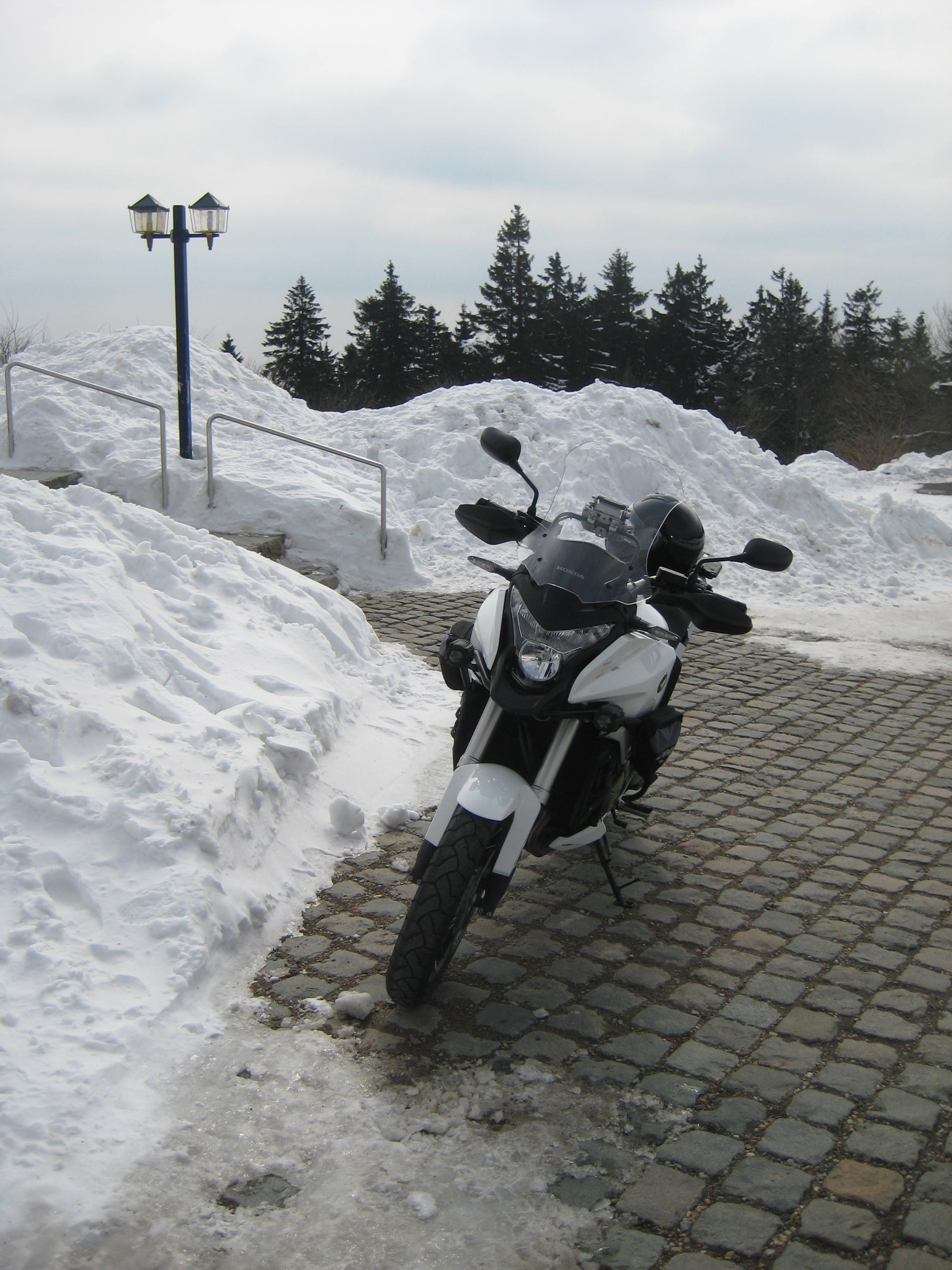 Heute auf dem Feldberg (Taunus) bei 0° und Sonnenschein. Trotzdem der einzige Mopedfahrer da oben.