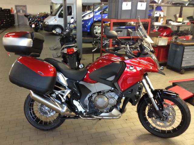 habe nun endlich das lange erwartete Foto von meinem freundlichen HH mit dem fertig montierten Koffersystem und CT bekommen. Habe lange auf das System warten müssen, aber nun ist SHAD endlich in der Lage auch für den CT einen Kofferträger zu liefern, der auch passt. Da ich die schwarzen und silbernen Koffer am CT einfach nur